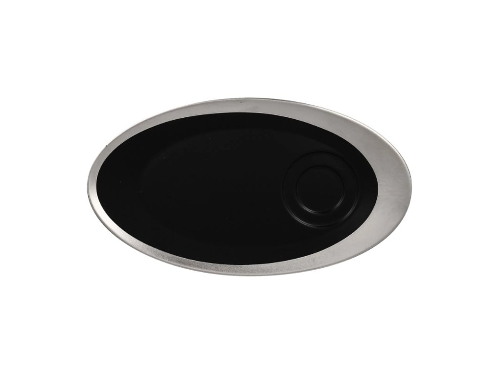 Porcelánový podšálek s kruhovým reliéfem ve stříbrném dekoru a tajemně černým středem dodává vkusnou a elegantní atmosféru. Vaše hosty ohromí, zaujme a zpříjemní jim gastronomický zážitek. Prvotřídní porcelán zaručuje kromě svého atraktivního designu také svou odolnost a kvalitní zpracování.Oválný podšálek