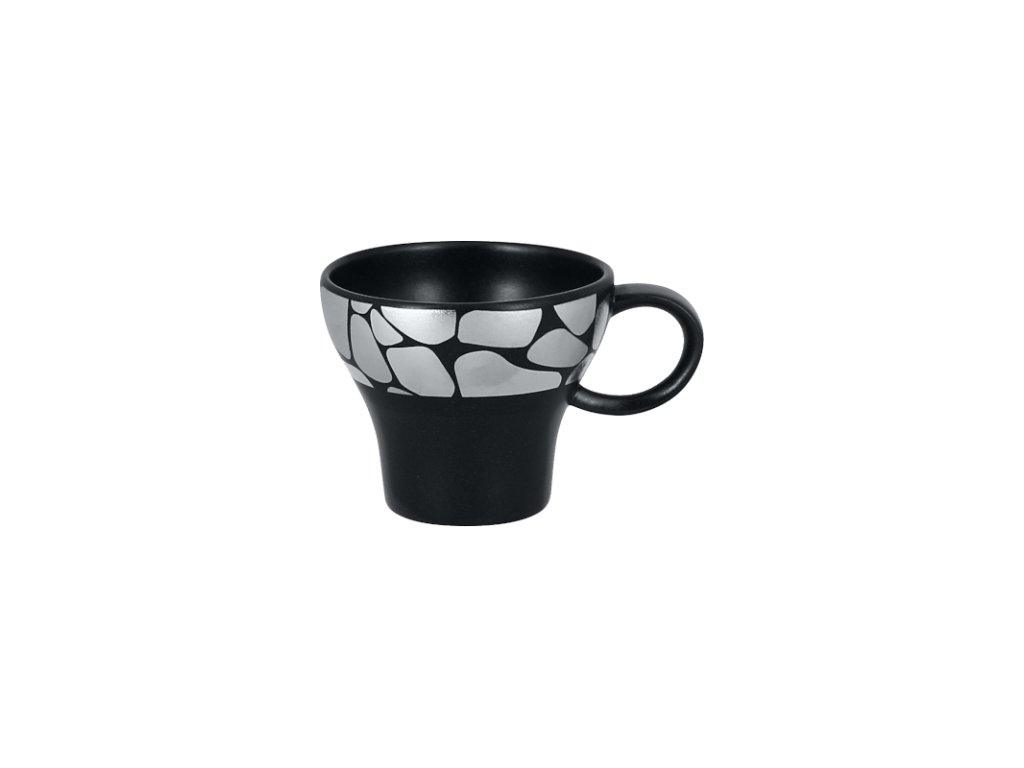 Šálek na espresso vytvořený s prvotřídní kvalitou porcelánu nechá vyniknout vaše kávová umělecká díla. Díky své stříbrné dlažbě zářící na černém pozadí působí jako okouzlující měsíc svítící na temné noční obloze. Zkrátka dodává ten správný šmrnc a luxusní atmosféru na všechny jídelní stoly.Šálek na espresso 9 cl, stříbrný