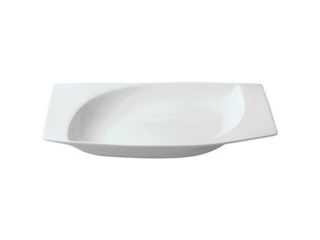 Hluboký talíř z porcelánu v bílém provedení bez dekoru v úzkém provedení. Křivky kolekce Mazza působí moderním šarmem, který dovoluje popustit uzdu fantazie a zaujme vaše hosty na první pohled. Na bílé barvě parádně vyniknou různé druhy pokrmů. Talíř má širší okraj, který můžete ozdobit pomocí glazury např. vašim logem.Talíř hluboký 32 × 21 cm