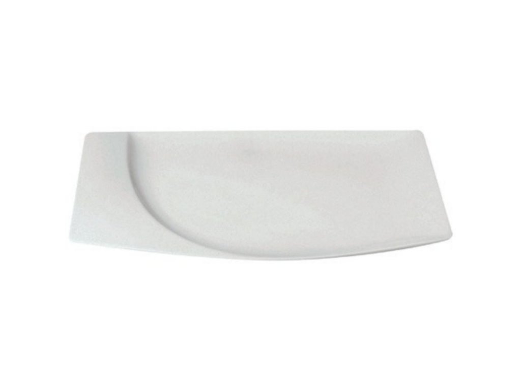 Mělký talíř z porcelánu v bílém provedení bez dekoru v obdélném provedení. Křivky kolekce Mazza působí moderním šarmem, který dovoluje popustit uzdu fantazie a zaujme vaše hosty na první pohled. Na bílé barvě parádně vyniknou různé druhy pokrmů. Talíře má širší okraj, který můžete ozdobit pomocí glazury např. vašim logem.Talíř mělký obdélný 20 × 13 cm
