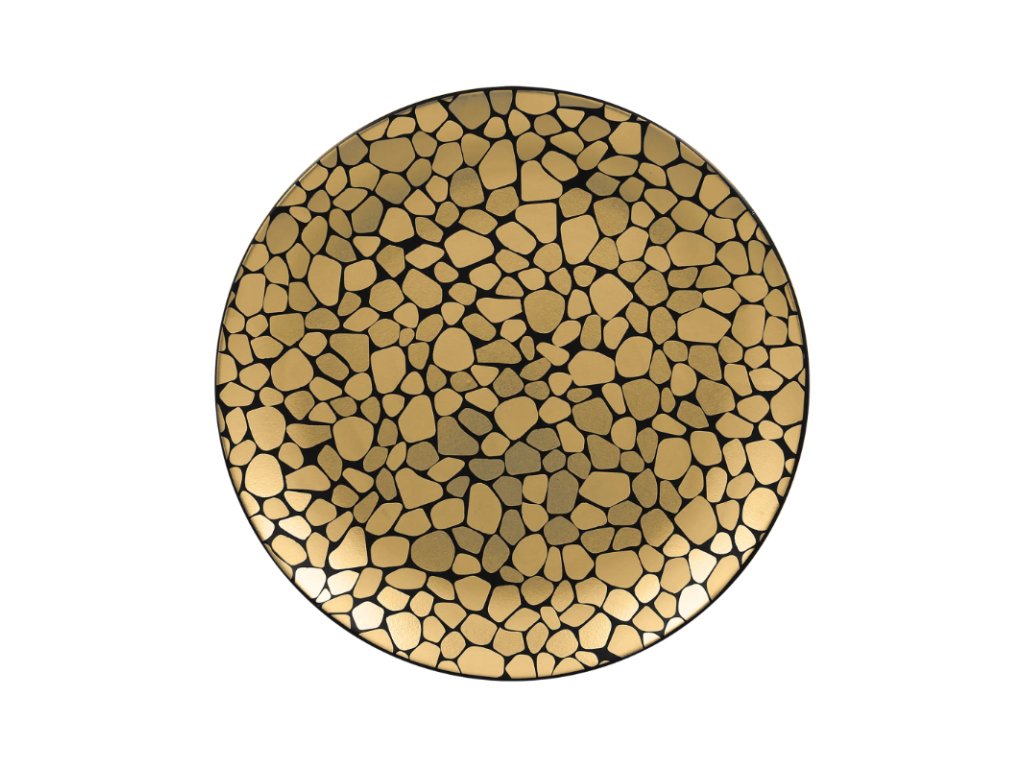 Mělký talíř s designovým dekorem vykreslujícím oblázky, které připomínají tisíce zářících sluncí. Kombinace zlatočerné dodává na luxusní atmosféře, která potěší a povznese gastronomické prožitky do slastných výšin nebes. Kvalitně zpracovaný porcelán zaručuje odolnost a dlouhodobou živostnost. Talíř využijete pro podávání vašeho kulinářského umění všeho druhu.Talíř mělký 28 cm