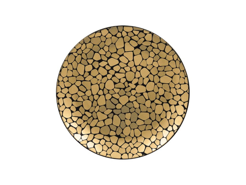 Mělký talíř s designovým dekorem vykreslujícím oblázky, které připomínají tisíce zářících sluncí. Kombinace zlatočerné dodává na luxusní atmosféře, která potěší a povznese gastronomické prožitky do slastných výšin nebes. Kvalitně zpracovaný porcelán zaručuje odolnost a dlouhodobou živostnost. Talíř využijete pro podávání vašeho kulinářského umění všeho druhu.Talíř mělký 31 cm
