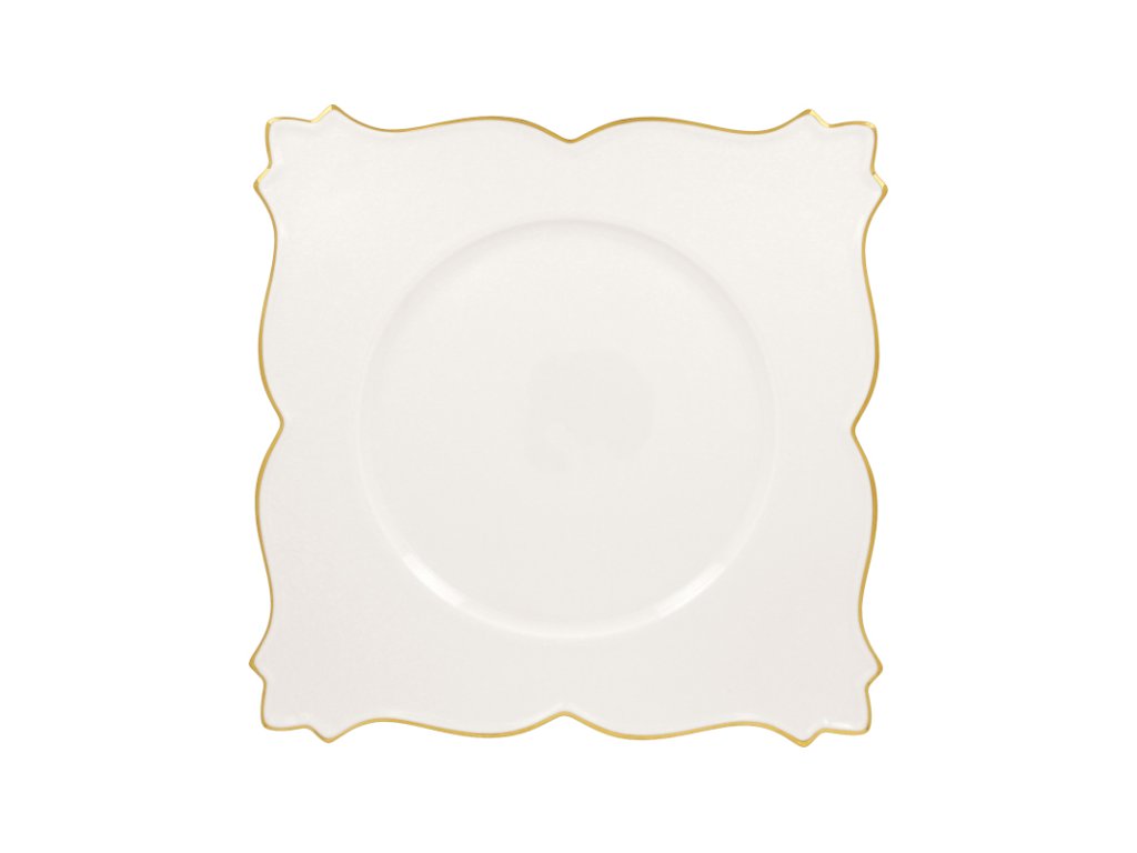 Tento talíř dodává pokrmům pocit luxusu díky propracovanému designu a také uvolňující nádech jako při pohledu na vycházející slunce. Propracované tvarování v bílém provedení se zlatým krajkovaným okrajem poskytuje parádní plátno pro servírování těch nejlepších kulinářských výtvorů. Kvalitní porcelán přispívá na kvalitě v podobě dlouhodobé životnosti a odolnosti proti poškození.Talíř čtvercový 26 × 26 cm