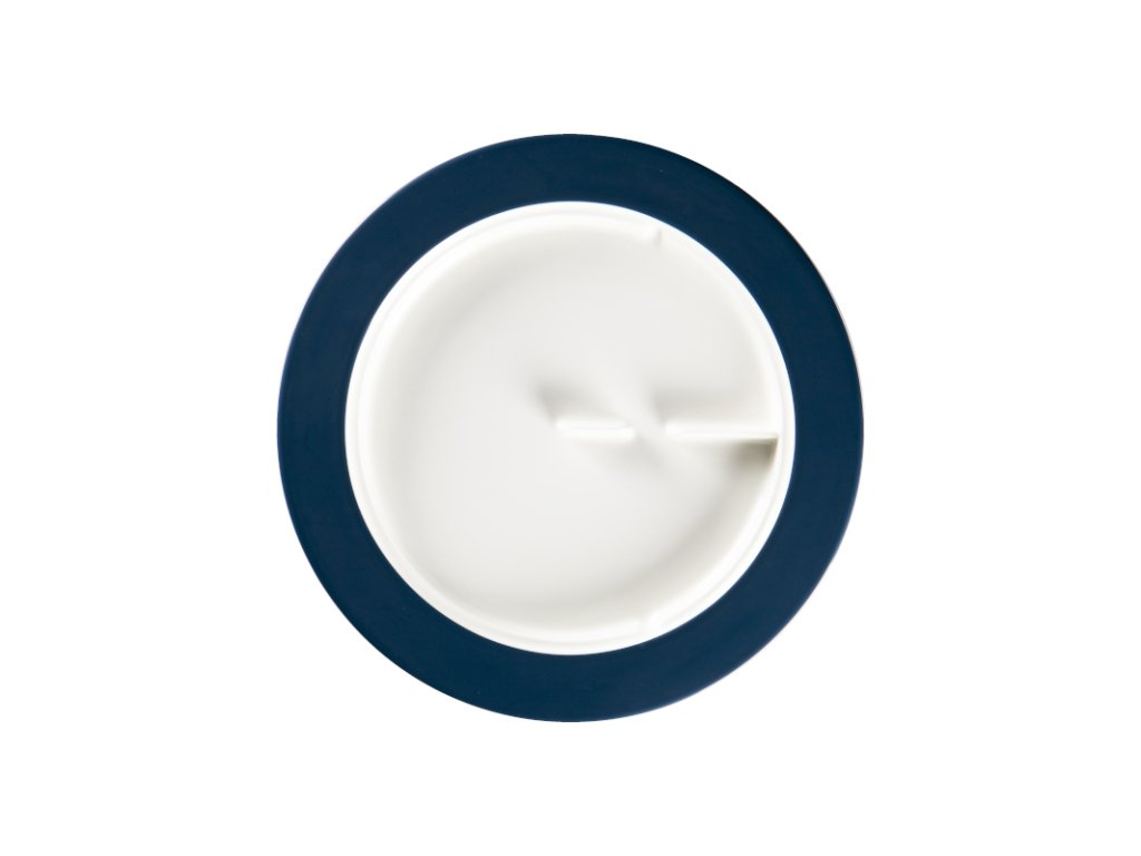 Talíř kolekce Sensate najde své využití zejména v nemocničních zařízeních u lidí s postižením horních končetin. Mnohokrát oceněný design poskytuje multifunkční přepážku, díky které uživatel může krájet sousta pokrmu libovolné velikosti a znovu získat pocit hrdosti a nezávislosti. Prvotřídní porcelán dodává na kvalitě a odolnosti.Talíř mělký s okrajem modrým pr. 23 cm