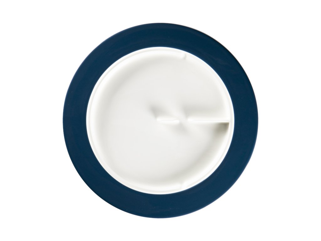 Talíř kolekce Sensate najde své využití zejména v nemocničních zařízeních u lidí s postižením horních končetin. Mnohokrát oceněný design poskytuje multifunkční přepážku, díky které uživatel může krájet sousta pokrmu libovolné velikosti a znovu získat pocit hrdosti a nezávislosti. Prvotřídní porcelán dodává na kvalitě a odolnosti.Talíř mělký s okrajem modrým pr. 28 cm