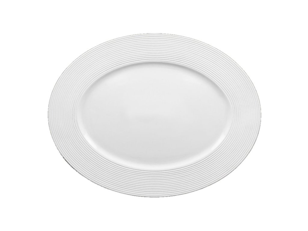 Oválný talíř z kolekce Evolution vás ohromí svým výjimečným designem, kterému dominují jemné, ale zároveň výrazné linie a zářivě bílá barva. Díky své velké ploše se perfektně hodí k podávání hlavních chodů, celých ryb nebo masa.Talíř oválný 36 × 27 cm