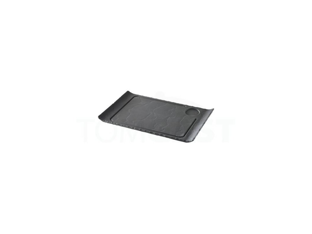 Basalt talíř na steak spojuje půvab břidlice s výhodami porcelánu. Jeho přírodní vzhled zdokonalí každé jídlo (maso, burgery, ryby apod.) a velikost talíře vám dovolí současně servírovat i přílohy jako špízy, vařenou zeleninu, hranolky a spoustu dalších. Prolis se perfektně hodí na mističku s hranolky nebo na ramekin s kečupem, hořčicí či bernskou omáčkou. Potěší vás také praktičnost talíře – dvě zvednuté drážky pomáhají k lepšímu uchopení a jednoduššímu servírování.Talíř na steak 39,5 × 24 cm, zahnuté hrany, prolis Ø 5,5 cm