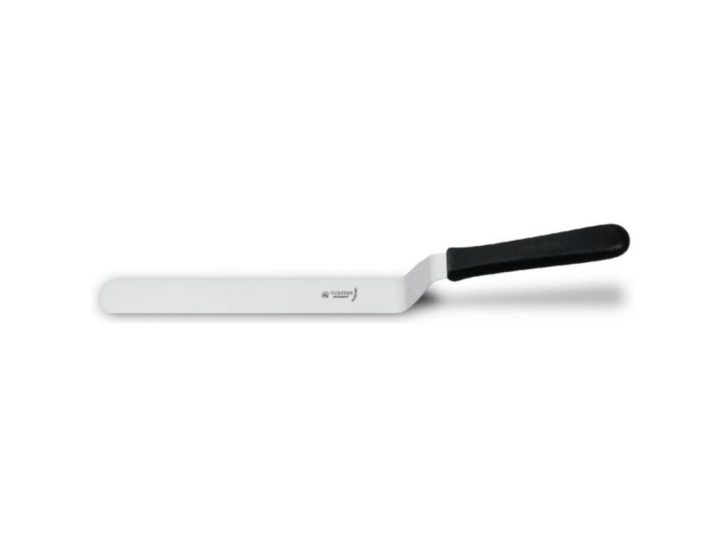 Roztírací paletu od značky Giesser ocení každý cukrář. Ocelová čepel je jemně naleštěná, aby odolala korozi a plastová rukojeť je při kontaktu s jídlem bezpečná a splňuje veškeré povinné požadavky. Paleta může do myčky, ale doporučujeme umývat ručně.Paleta roztírací prohnutá 31 cm