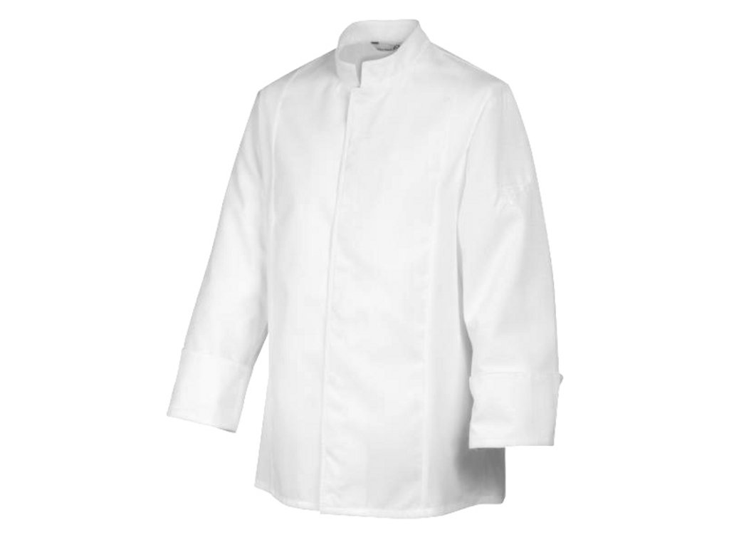 Šéfkuchařský rondon Siaka se vyrábí z nejkvalitnější bavlny s elegantní „kostkovanou“ texturou v kombinaci s bočními panely z prodyšné síťoviny s technologií Cool Plus® pro rychlý odvod potu, rychlé schnutí a plný komfort nošení. Vnitřní strana stojáčku obsahuje froté tkaninu, která účinně absorbuje vlhkost a poskytuje optimální pohodlí. Mírně vypasovaný střih působí více elegantně při současném komfortu používání. Rondon má skryté upevňovací úchyty a kapsu na rukávu pro pero. Je určený pro muže i ženy a lze ho průmyslově prát v souladu s normou ISO 15797 pro bílé a barevné látky.Rondon, bílý, dl. rukáv, XXXL