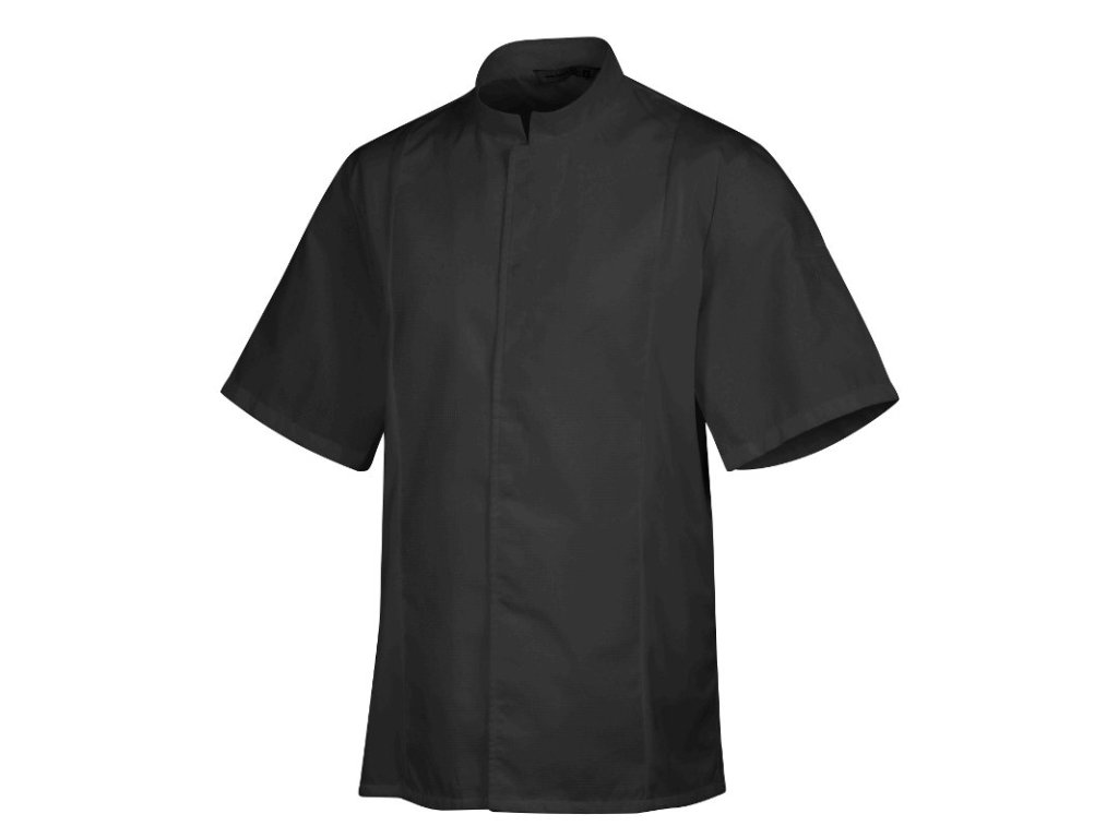 Šéfkuchařský rondon Siaka se vyrábí z nejkvalitnější bavlny s elegantní „kostkovanou“ texturou v kombinaci s bočními panely z prodyšné síťoviny s technologií Cool Plus® pro rychlý odvod potu, rychlé schnutí a plný komfort nošení. Vnitřní strana stojáčku obsahuje froté tkaninu, která účinně absorbuje vlhkost a poskytuje optimální pohodlí. Mírně vypasovaný střih působí více elegantně při současném komfortu používání. Rondon má skryté upevňovací úchyty a kapsu na rukávu pro pero. Je určený pro muže i ženy a lze ho průmyslově prát v souladu s normou ISO 15797 pro bílé a barevné látky.Rondon, černý, kr. rukáv, S