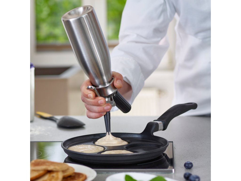 Vykouzlete lahodnou šlehačku s láhví od značky Kayser. Stačí ji jen nalít dovnitř a za pomocí bombičky se vytvoří pěna. Na výrobu celého produktu se používá špičková nerezová ocel, která vydrží spoustu let a je recyklovatelná. Na pokrytí celého objemu vystačí jedna plynová bombička. Nedá se ale znovu naplnit, proto ji musíte při každém použití vyměnit.Šlehačková láhev INOX 1 l