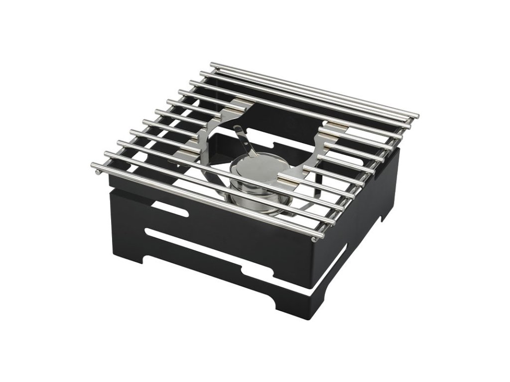 Čtvercový stojan pro indukční varnou desku přináší estetický prvek do gastronomických provozů, jako jsou hotelové bufety, cateringové služby nebo restaurační výdejní stanice. Díky konstrukci z nerezové oceli 18/10 a elegantní černé povrchové úpravě v práškovém nástřiku je nejen odolný, ale i vizuálně atraktivní pro vaše hosty. Tento stojan je kompatibilní s indukční deskou Y-11764-230 (není součástí balení). Silikonové protiskluzové prvky zajišťují stabilitu a bezpečnost při používání.Technické parametry