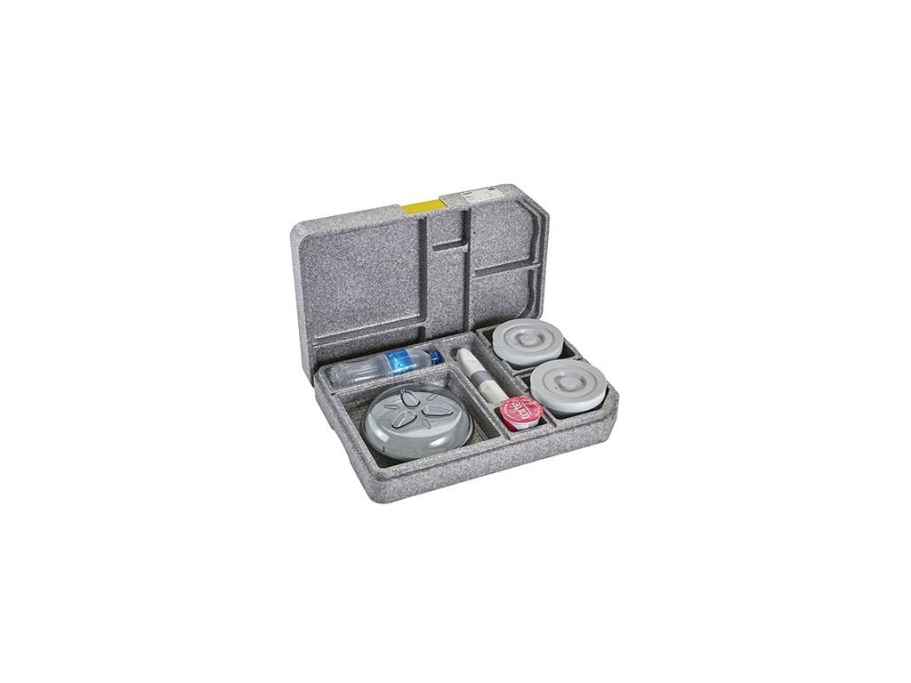 Tabletový systém Tablotherm je cenově výhodné řešení pro doručování jídla. Izolovaná nádoba odděluje studené a teplé pokrmy a udrží jejich teplotu až po dobu 1 hodiny. Speciální oddíly můžete využít na nápoje nebo drobné pochoutky. Na její výrobu se používá extra lehký expandovaný polypropylen, odolný materiál bez PBA. Součástí nádoby je i dvojdílný talíř s poklopem a dvě misky s víčkem.Tablotherm 370 × 530 × 118 mm