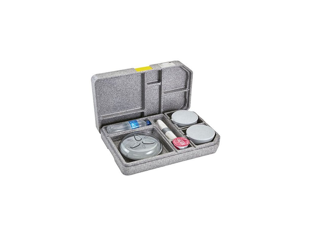 Tabletový systém Tablotherm je cenově výhodné řešení pro doručování jídla. Izolovaná nádoba odděluje studené a teplé pokrmy a udrží jejich teplotu až po dobu 1 hodiny. Speciální oddíly můžete využít na nápoje nebo drobné pochoutky. Na její výrobu se používá extra lehký expandovaný polypropylen, odolný materiál bez PBA. Součástí nádoby jsou i dva obdélné talíře s poklopem a dvě izolované misky s víčkem.Tablotherm izo misky 370 × 530 × 118 mm