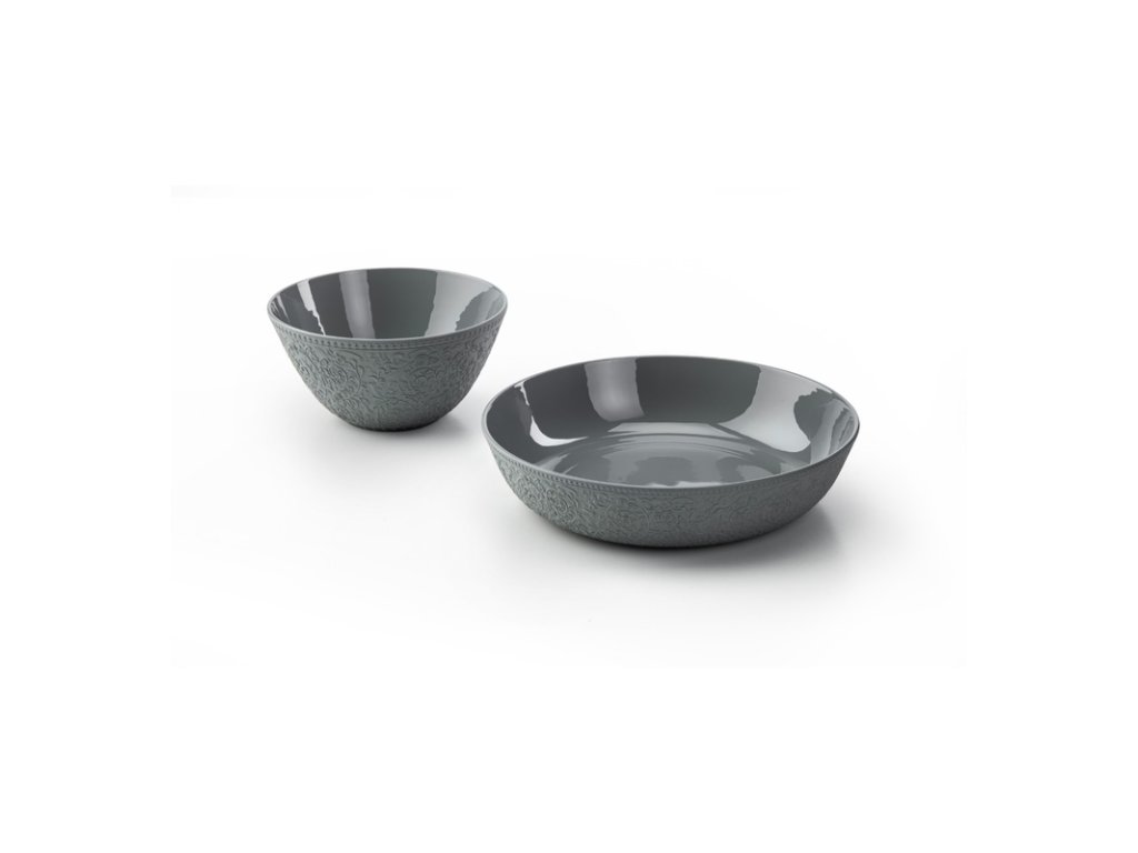 Tato kolekce přináší čistou krásu šedého porcelánu připomínajícího beton s vnějším dekorem na vaše jídelní stoly. Tmavé barevné provedení nechá parádně vyniknout vaše kulinářské speciality a pěkný design dodá tu pravou šťávu. Odolnost porcelánu se postará o prvotřídní kvalitu.Výrobce