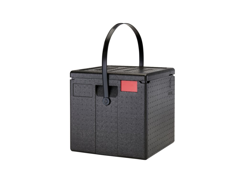 Termobox na pizzu renomovaného výrobce CAMBRO je jedním z nejlepších produktů pro přepravu pizzy na trhu. Boxy vynikají svou odolností, lehkostí a kromě vestavěných úchytů disponují také plastovým úchytem pro ještě jednodušší manipulaci. Díky důmyslné konstrukci boxu bude pizza jako čerstvě vytažená z pece – materiál zajistí udržení ideální teploty (4+ hodin), zatímco vestavěný větrací otvor uvolňuje páru a pizza zůstává teplá a křupavá. Termobox pojme až 8 pizz o průměru 33 cm, je stohovatelný, odolný vůči mastnotě či chemikáliím a lze ho mýt v myčce nádobí.Termobox na pizzu s černým úchytem 8 ks (35 cm)