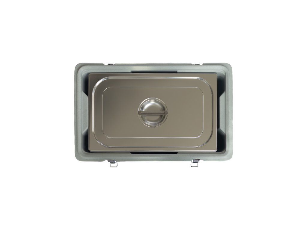 Izotermický termoport s horním plněním – provedení S je navržen pro profesionální gastronomické provozy, které pracují se stohovatelnými GN nádobami a vyžadují pevné, řízené uložení GN během přepravy.
