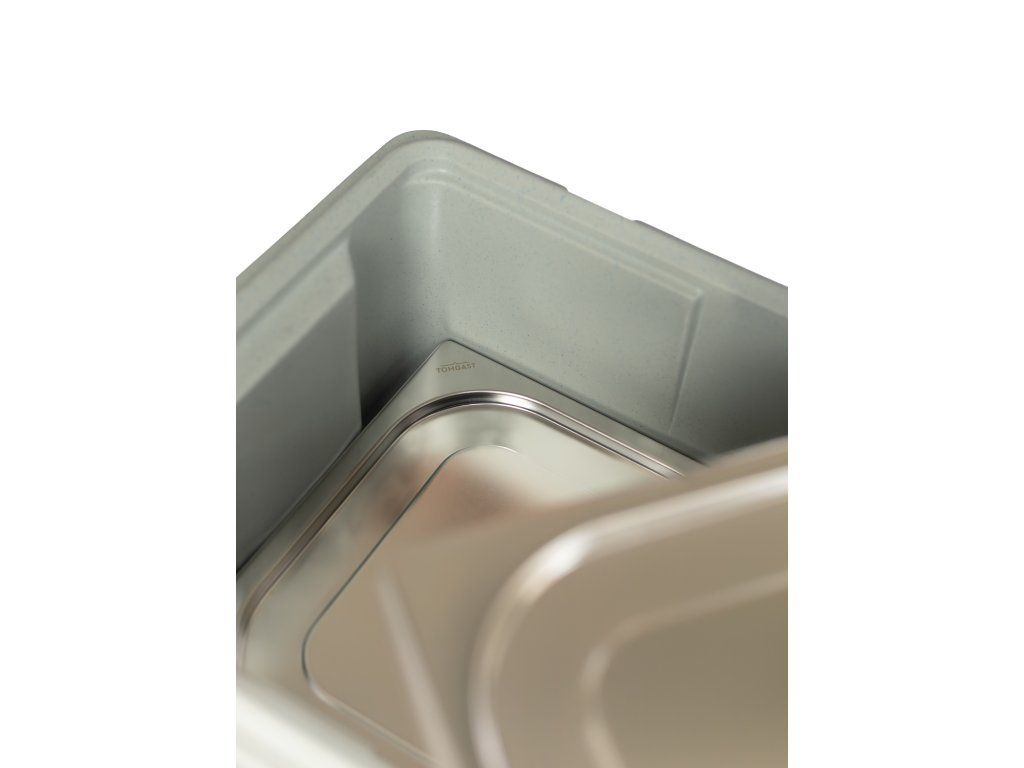 Dvoustěnná monobloková konstrukce bez spojů, hran a svarů zajišťuje vysokou mechanickou odolnost, dlouhou životnost a snadnou hygienickou údržbu i při každodenním zatížení. Vnitřní i vnější plášť z potravinářského polyethylenu je doplněn izolační vrstvou z polyuretanové pěny bez CFC a HCFC, která umožňuje bezpečné použití v teplotním rozsahu od −30 °C do +100 °C.