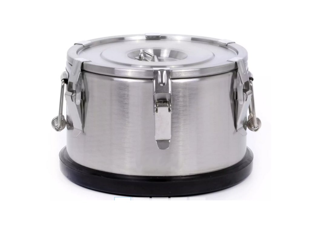 Kvalitní celonerezová várnice slouží pro udržení horkých i studených nápojů v ideální teplotě. Skvěle se tak hodí do různých jídelen, hotelů a jiných podniků. Víko várnice uchyceno 4 masivními přezkami a vnitřek termosu nelze vytáhnout. Objem (10 l) je měřen přesně po okraj várnice a dodává se bez kohoutku. Možno dokoupit podstavec pod várnici (na objednávku).Termos bez výpustného kohoutu 10 l