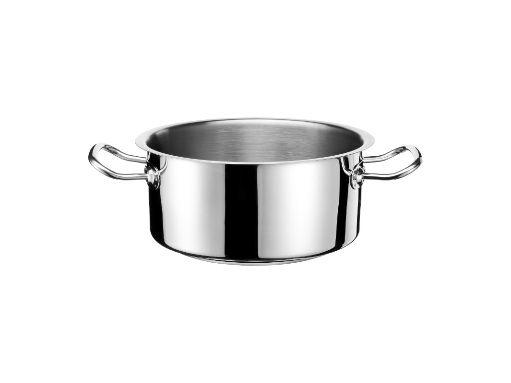 Nízký hrnec po záštitou značky Tomgast patří do inovované kolekce Exclusive. Září svou elegantností a chlubí se svou kvalitou. Vyrábí se z vysoce leštěné oceli, která je ideální do otevřených kuchyní. Navíc se jedná o výrobek z jednoho kusu nerezové oceli, se svařenými držadly a vícevrstvým dnem o tloušťce 7 mm s vynikající tepelnou vodivostí. Hladký povrch se snadno udržuje čistý.Hrnec nízký 1,4 l