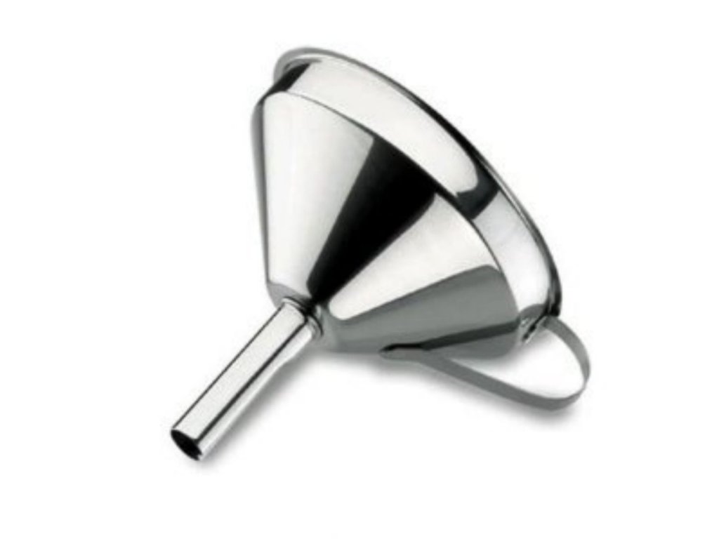 Trychtýř najde své uplatnění v každé kuchyni. Tento se vyrábí z kvalitní nerezové oceli, která zajišťuje odolnost a jednoduchou údržbu, a má vyjímatelné sítko i praktické držadlo. Skvěle se hodí pro plnění olivového oleje do stolní karafy, také kávy či čaje do termosky nebo různých koktejlových přísad do šejkru.Trychtýř nerezový 14 cm