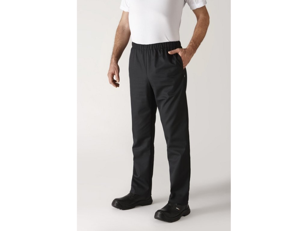 Pohodlné kalhoty ve volnějším střihu. Elastický pas zajišťuje vysoký komfort nošení a praktické boční kapsy na šev ho ještě povyšují. Nohavice mají ve spodní části černé druky, které slouží pro úpravu. Kalhoty lze prát v průmyslových pračkách.Kalhoty, černé, XXL