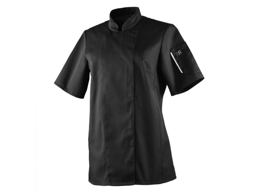 Lehký, moderní rondon s krátkým rukávem je vyrobený z polybavlny, což je pohodlná a prodyšná látka, takže ideální do každé kuchyně. Kontrastní zakončení kapsy na rukávu představuje decentní ozdobný prvek. Dále na něm najdete skryté zapínání i stojáček. Tento střih se hodí se pro ženy a lze jej prát v průmyslových pračkách.Rondon, dámský, černý, kr. rukáv, L