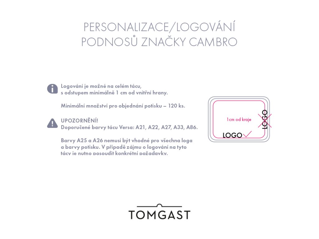 Stylové, vysoce odolné a dostupné v široké škále designů – to jsou polyesterové podnosy Versa. Nejlepší volba pro jídelny, školy a zdravotnictví. Vyrábí se z polyesteru vyztuženého skelnými vlákny pro vynikající odolnost vůči skvrnám, poškrábání, chemikáliím a teplotě. Zesílené rohy zaručují větší bezpečnost a hladký povrch se mezi použitími snadno čistí i dezinfikuje. Podnosy zvládnou tolik cyklů v myčce nádobí, kolik jen budete potřebovat. Vyberte si tvar a velikost, které nejlépe vyhovují potřebám vašeho konkrétního provozu jídelny, včetně hran s vysokým a nízkým profilem. Stohovací očka zajišťují úplnou cirkulaci vzduchu pro rychlé schnutí a dokonalé skladování. Polyesterové podnosy Versa představují všestrannou volbu pro hygienický a pohodlný zážitek.Výrobce