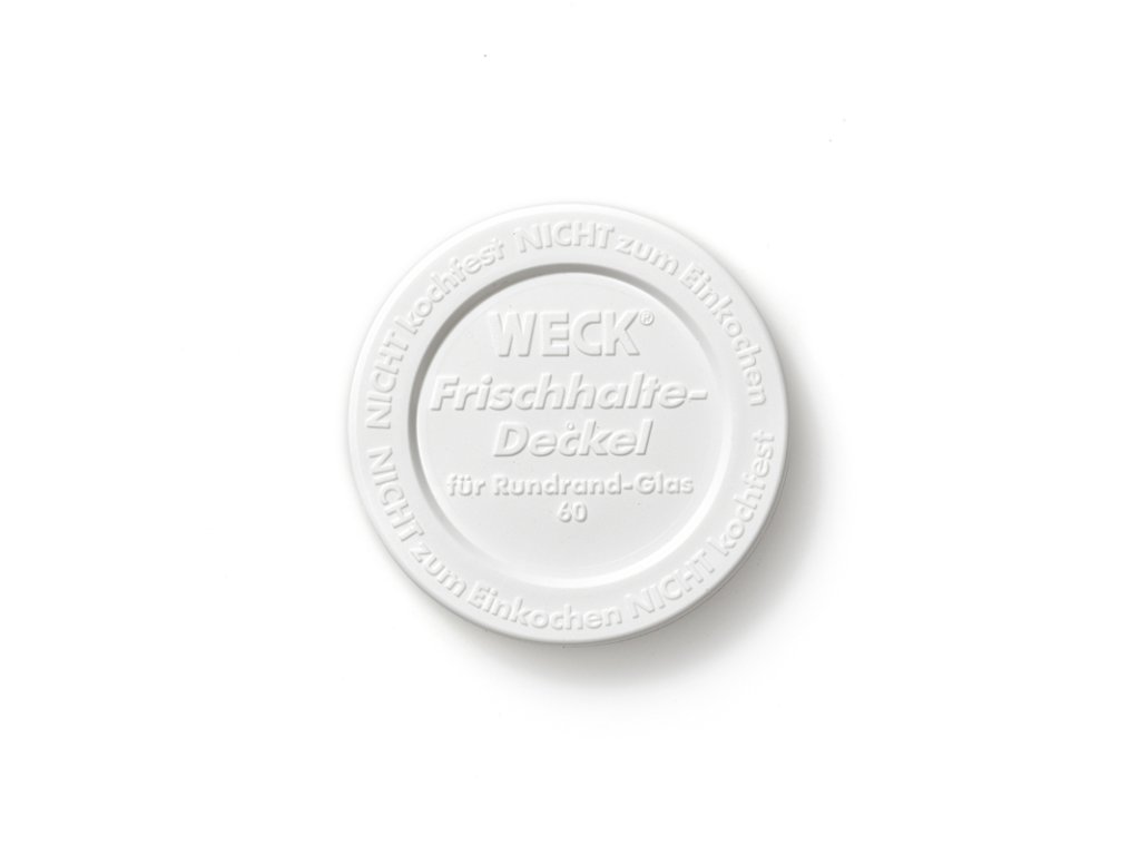 Sklenice WECK lze pořídit se vzduchotěsným víkem, bez něj či pouze jako samostatné uzávěry ke sklenicím. Skvěle se hodí pro zavařování podomácku vyráběných potravin, skladování čerstvých a sušených pochutin nebo jako domácí dárkové nádoby, které potěší blízké osoby. Sklenice lze zamrazovat i vařit v páře. Plastové víčko WECK o průměru 60 mm pasuje ke sklenicím WECK Mini Sturz 50 ml, WECK Mini Sturz 80 ml, WECK Bakery 80 ml, WECK Mini Sturz 140 ml.Víčko plastové WECK 60 mm