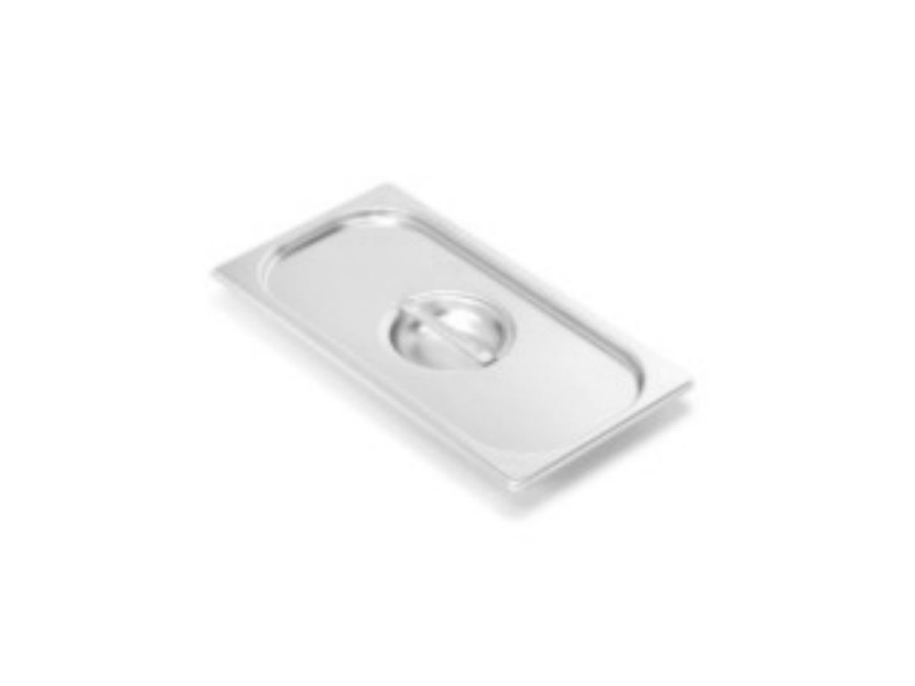 Víko na gastronádoby Profi se také vyrábí z nerezové oceli 18/10 (18 % niklu, 10 % chromu), která zaručuje jeho vysokou odolnost a dovoluje ho umýt v myčce. Víko můžete používat při vaření i při výdeji jídla.Víko na gastronádoby Profi bez úchytů GN 1/6