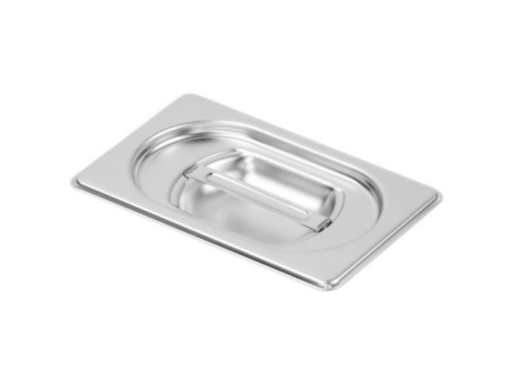 Víko na gastronádoby Profi se také vyrábí z nerezové oceli 18/10 (18 % niklu, 10 % chromu), která zaručuje jeho vysokou odolnost a dovoluje ho umýt v myčce. Víko můžete používat při vaření i při výdeji jídla.Víko na gastronádoby Profi bez úchytů GN 1/9