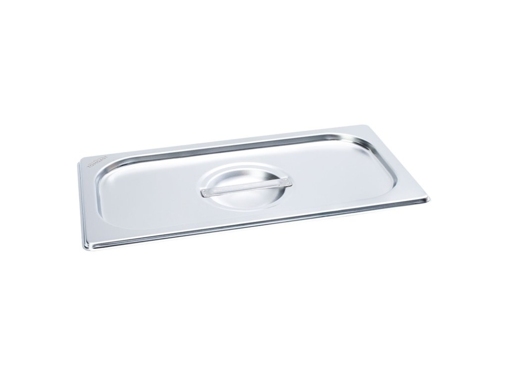 Víko na gastronádoby Standard se také vyrábí z nerezové oceli 18/10 (18 % niklu, 10 % chromu), která zaručuje jeho vysokou odolnost a dovoluje ho umýt v myčce. Víko můžete používat při vaření i při výdeji jídla.Víko na gastronádoby Standard bez úchytů GN 1/3