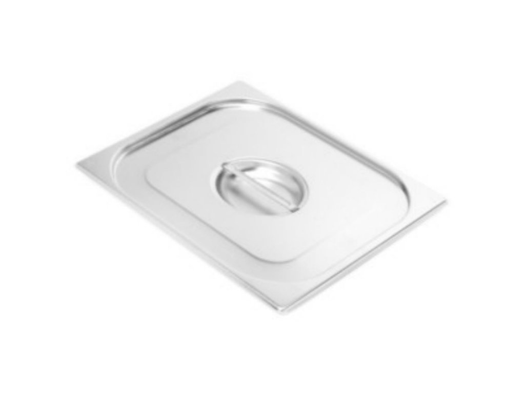 Víko na gastronádoby se vyrábí z nerezové oceli 18/10 (18 % niklu, 10 % chromu), která zaručuje jeho vysokou odolnost a dovoluje ho umýt v myčce. Víko můžete používat při vaření a při výdeji jídla oceníte i výřez na naběračku, který vám servírování usnadní.Víko s výřezem na naběračku na gastronádoby s úchyty GN 2/3
