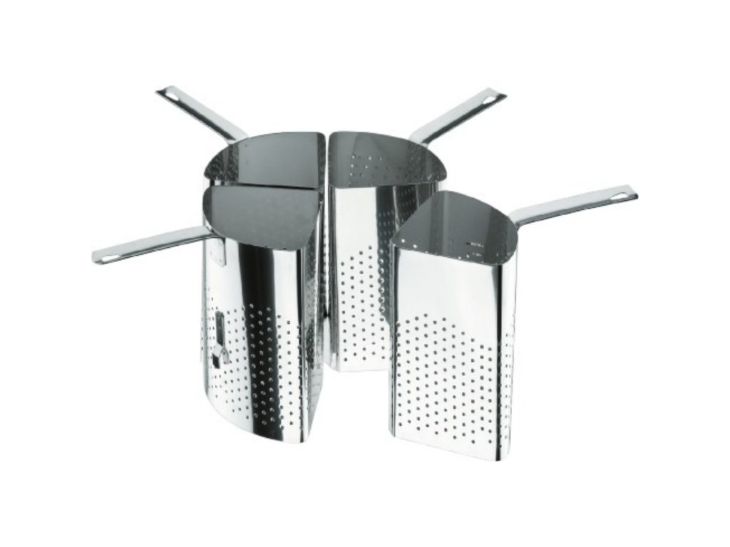 Profesionální nerezová vložka určená pro vaření těstovin v hrncích o průměru 40 cm. Vložka se vyrábí z kvalitního nerezu 18/10, je opatřena háčkem pro uchycení na hranu hrnce a děrovaná otvory o průměru 3,5 mm. Do hrnce o průměru 40 cm jsou určeny 4 vložky.Vložka do hrnce na těstoviny