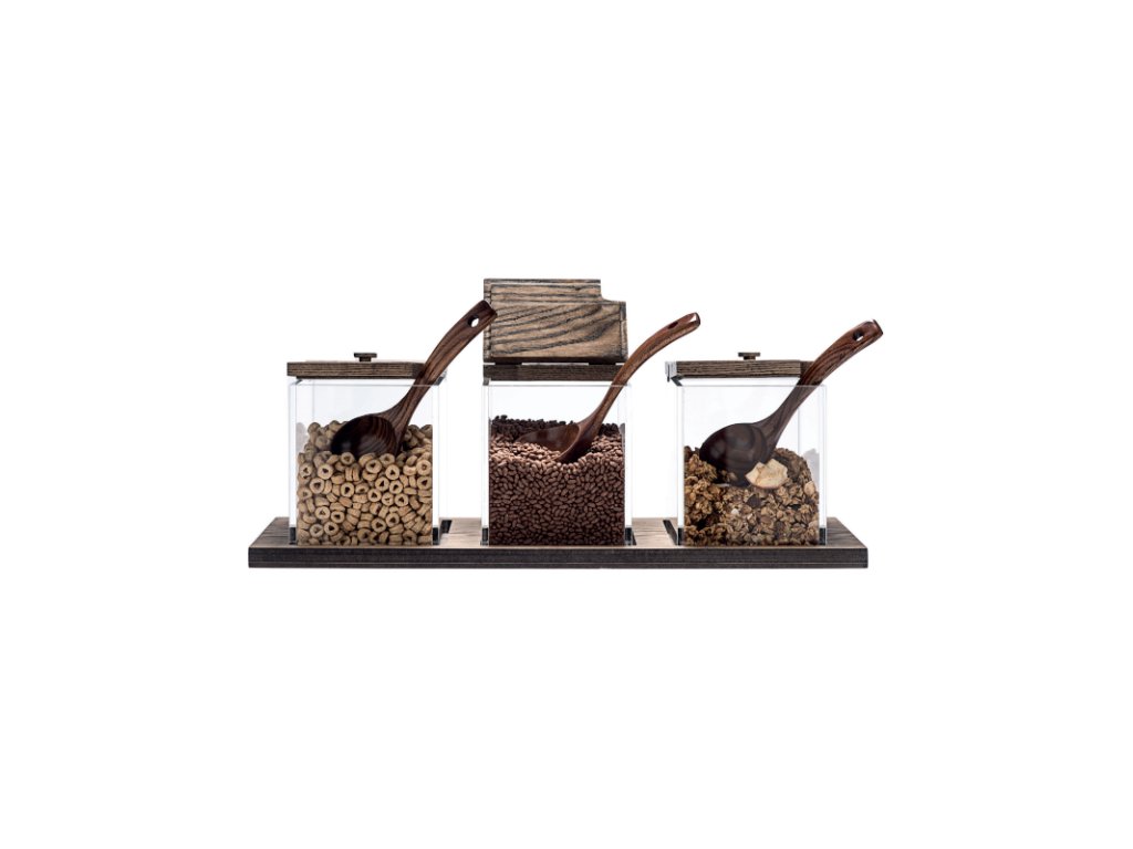 Zásobník na cereálie bez stojanu s müsli, ořechy nebo sušené ovoce je nepostradatelným doplňkem pro vaše snídaňové bufety, kavárny či hotelové restaurace. Obsahuje průhledné nádoby a umožňuje vašemu personálu snadnou kontrolu množství surovin nebo přehledný výběr pro hosty. Set obsahuje základnu pro zásobník, 3 lžíce, 3 dózy s víkem ve stejné barvě základny. Pro lepší organizaci bufetu doporučujeme kombinaci se stojanem GN 2/4 pro vyšší stabilitu.Set obsahuje