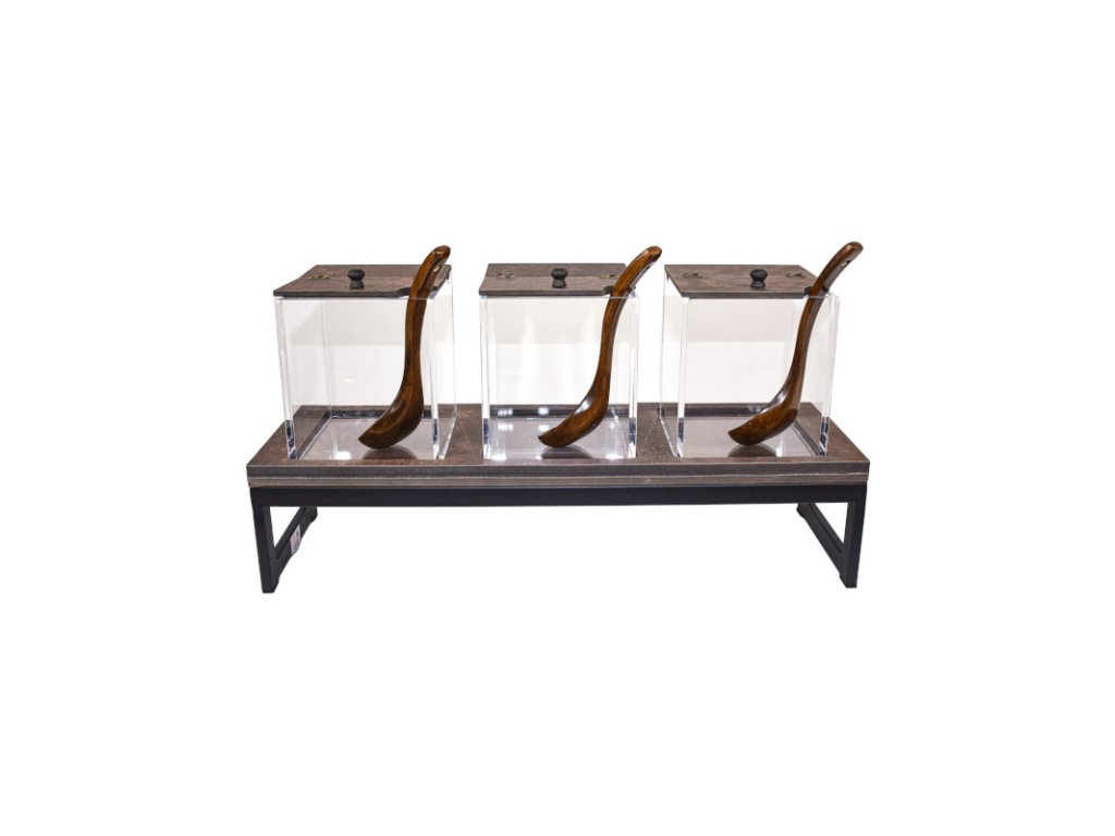 Zásobník na cereálie se stojanem s müsli, ořechy nebo sušené ovoce je nepostradatelným doplňkem pro vaše snídaňové bufety, kavárny či hotelové restaurace. Obsahuje průhledné nádoby a umožňuje vašemu personálu snadnou kontrolu množství surovin nebo přehledný výběr pro hosty. Set obsahuje základnu pro zásobník, 3 lžíce, 3 dózy s víkem ve stejné barvě základny. Barvu stojanu si lze vybrat podle vašich preferencí.Set obsahuje