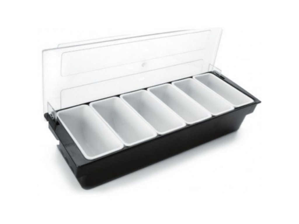 Zásobník na ingredience se hodí barmanům k přípravě míchaných nápojů. Je ideální pro všechny barové přísady jako třešně, olivy, limetky nebo citrónové měsíčky.Zásobník na ingredience