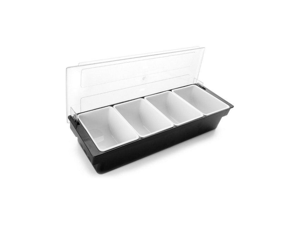 Zásobník na ingredience se hodí barmanům k přípravě míchaných nápojů. Je ideální pro všechny barové přísady jako třešně, olivy, limetky nebo citrónové měsíčky.Zásobník na ingredience